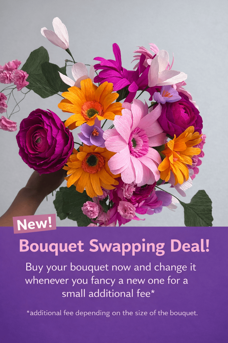 Because paper flowers never fade, your bouquet will last beautifully for years… but sometimes you may feel like a little change